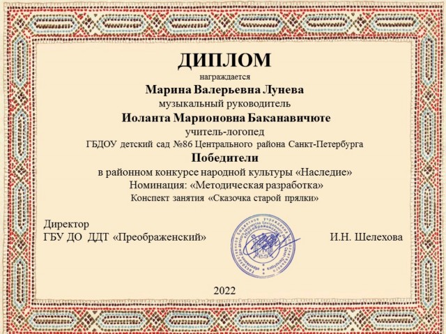 Государственное бюджетное дошкольное образовательное учреждение детский сад №86 комбинированного вида Центрального района Санкт-Петербурга
