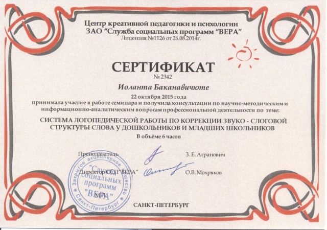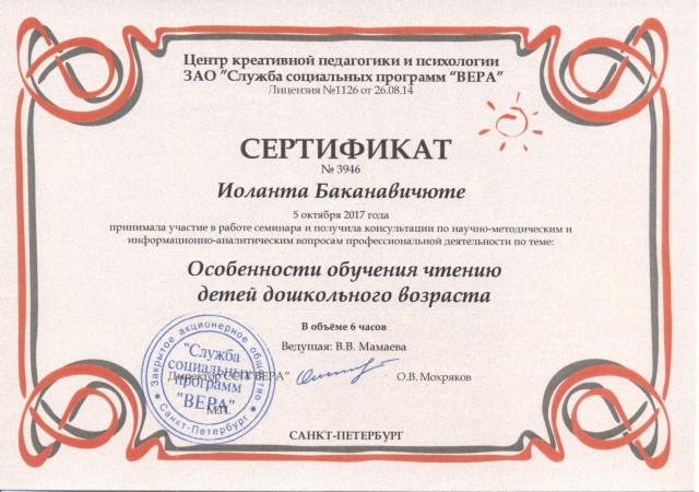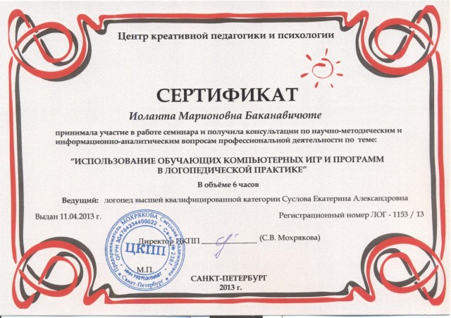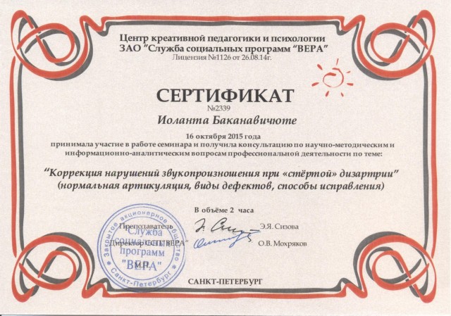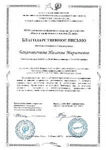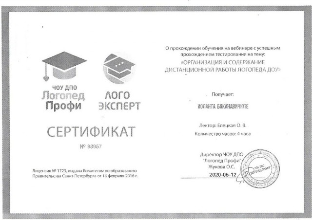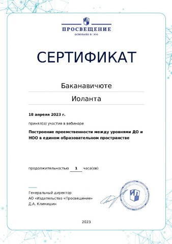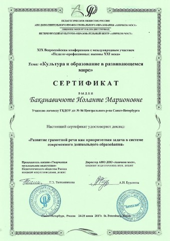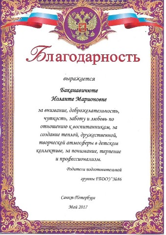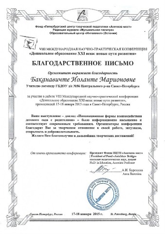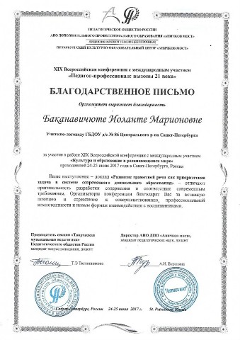 Баканавичюте Иоланта. Грамоты, благодарности, участие в конференциях