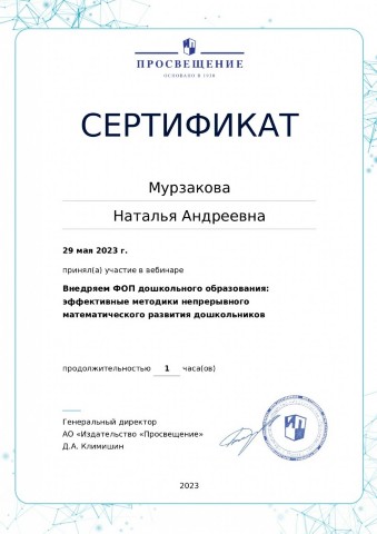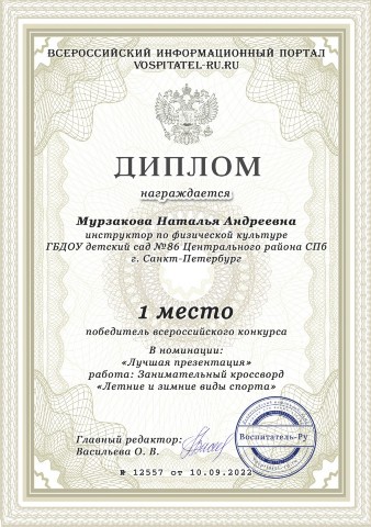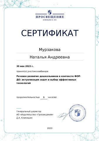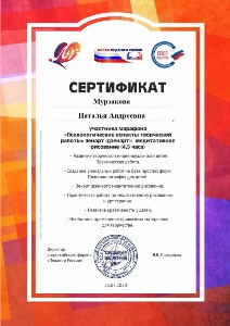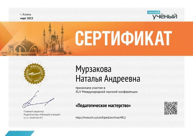 Мурзакова Наталья Андреевна. Грамоты, благодарности, участие в конференциях