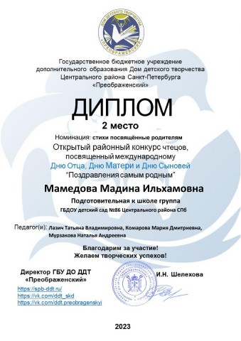 Государственное бюджетное дошкольное образовательное учреждение детский сад №86 комбинированного вида Центрального района Санкт-Петербурга