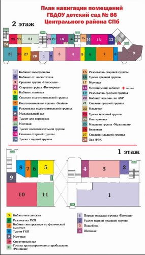 Поэтажный план навигации помещений ГБДОУ детского сада №86 (СПб, ул. Бородинская, д.12/31)