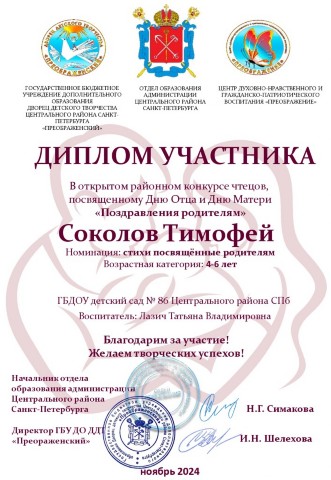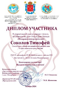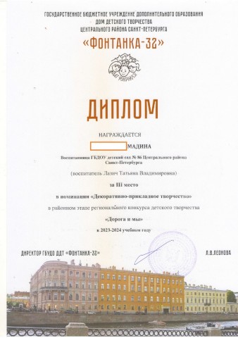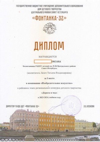 Государственное бюджетное дошкольное образовательное учреждение детский сад №86 комбинированного вида Центрального района Санкт-Петербурга