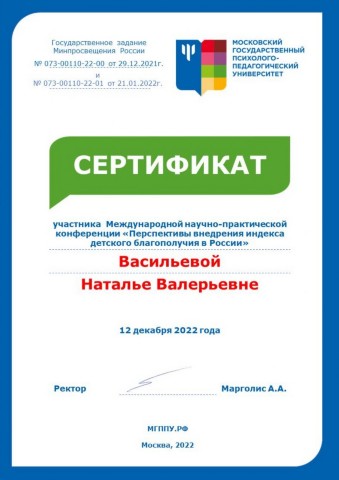 Васильева Наталья Валерьевна. Грамоты, благодарности, участие в конференциях