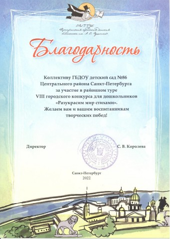 Государственное бюджетное дошкольное образовательное учреждение детский сад №86 комбинированного вида Центрального района Санкт-Петербурга