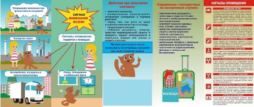 При этом необходимо включить телевизор, радиоприемник, репродуктор радиотрансляционной сети и прослушать сообщение о нижеперечисленных сигналах или информацию о действии в чрезвычайной ситуации.