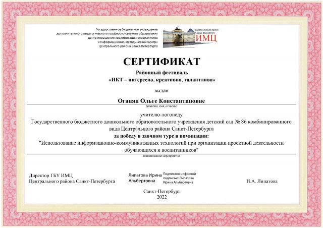 Государственное бюджетное дошкольное образовательное учреждение детский сад №86 комбинированного вида Центрального района Санкт-Петербурга