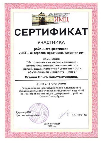 Оганян Ольга Константиновна. Грамоты, благодарности, участие в конференциях