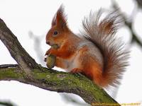 Проворная, запасливая, рыжая или серая, любит орешки. (Белка.)
