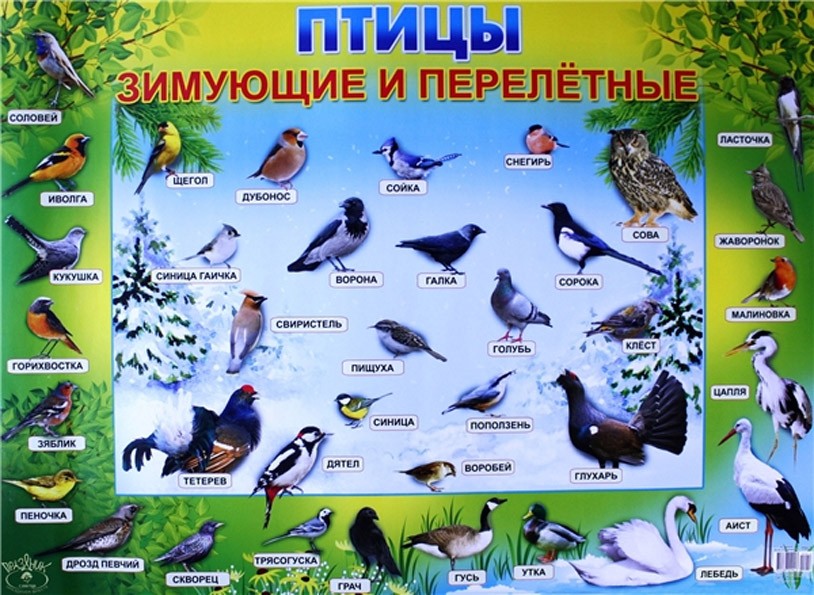 К перелетным птицам можно отнести зяблика, трясогузку, певчего дрозда, горихвостку, ласточку, лесного конька, малиновку, чибиса, жаворонка, иволгу. А к зимующим – воробьев, ворон, синиц, снегирей, голубей, сов, дятлов, сорок. Так, ребенок не только пополнит словарный запас новыми названиями птиц, но и образами.