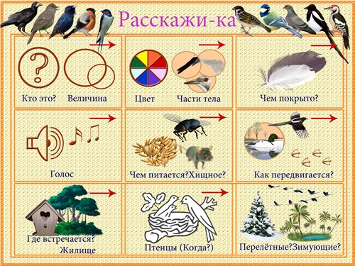 Составление рассказа-описания о птицах по схеме: