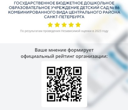 Анализ независимой оценки ГБДОУ детского сада №86 Центрального района СПб, результаты голосования - апрель 2023 г. >>