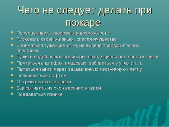 Чего не следует делать при пожаре |