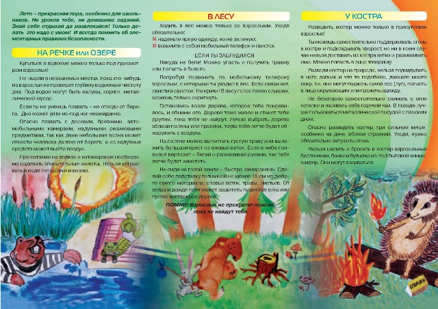 Памятка от МЧС "На речке или озере, в лесу, у костра" |