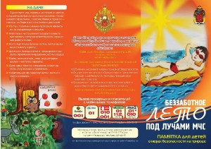 Памятка дла детей "Беззаботное лето под лучами МЧС" |
