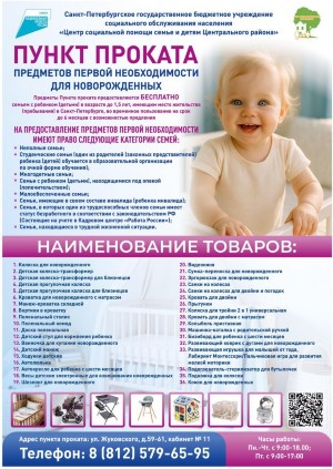 С подробной информацией о работе пункта проката можно ознакомиться в карточке, а также позвонив по номеру телефона: 579-65-95 и обратившись в Центр социальной помощи семье и детям лично в рабочие часы.